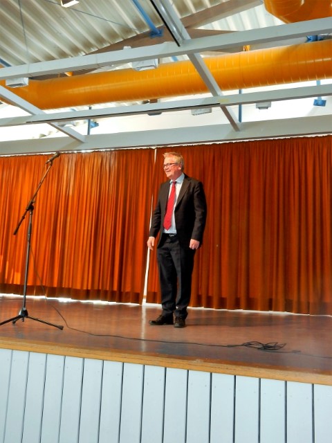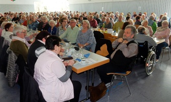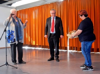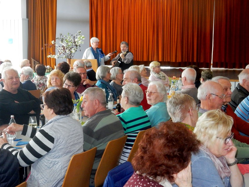 Beim Karneval im Rheinland ist er als „Ne Hausmann“ eine feste Größe und als Kabarettist ist er seit 1999 unter dem Pseudonym Jürgen B. Hausmann auf vielen Bühnen bundesweit unterwegs und auch in Rundfunk und Fernsehen präsent. Die rührige Leiterin des Seniorenkreises hatte diesmal also „hoch ins Regal“ gegriffen, einen Kabarettisten mit Ausstrahlung und Charisma gewählt und es dabei geschafft, durch zähe Verhandlungen den Eintrittspreis für die rund 250 Seniorinnen und Senioren in der randvollen Halle auf bescheidene 8 Euro zu begrenzen – knapp ein Drittel dessen, was Zuschauer sonst für einen Auftritt des rheinischen Kabarettisten bezahlen müssen.
