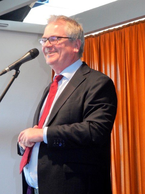 Die Laune war von Anfang an bestens, schließlich servierte ein fleißiges Team Kaffee und Kuchen, und auch eine gut halbstündige Verspätung Hausmanns wegen des dichten Autobahnverkehrs konnte die Stimmung nicht trüben. Auch dass Kenner schnell merkten, der Kabarettist hatte eine Bonsaiversion seines Frühlingsprogramms „Frühling, Flanzen, Feiertage“ mitgebracht, trübte die Stimmung nicht im geringsten. Die Bühne blieb zwar kahl – ohne die sonst übliche intensive Gartendekoration -, aber so konnte Jürgen B. Hausmann umso besser beweisen, dass er eine volle Halle mit lebenserfahrenen Zuhörern eine gute Stunde lang als Alleinunterhalter ohne alles Brimborium bestens unterhalten, Lachsalven provozieren und nicht selten auch Beifallsstürme auslösen kann. Die Zutaten für sein erfolgreiches Bühnenprogramm kann man tatsächlich auf drei Kernbegriffe reduzieren: Sprachwitz, Alltagsbeobachtungen und Nostalgie.