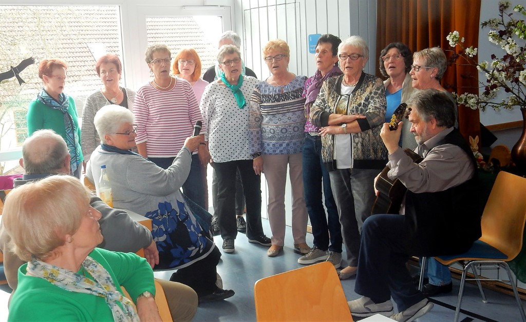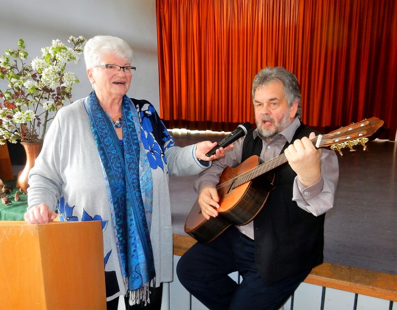 Er schaut dem Volks aufs Maul und gibt das in deutlichen Worten, aber nie unter der Gürtellinie, wieder, deckt die Skurrilitäten des Alltags auf und traf mit seinem typischen rheinischen Witz spürbar den Nerv der Senioren vom Untermain, wobei es erstaunlicherweise keinerlei Verständigungsprobleme gab. Offenbar ist es dort wirklich „Jenau wie bei uns“ und jeder in der Halle verstand genau, dass es im Rheinland wie bei uns der Regen genau dann fällt, wenn ihn der Rasen nicht mehr braucht: „Aber gießte nem oder sprengste nem, denn regne et und der Petrus sitzt oben und lacht sich schlapp.“ Die Bettendialoge eines rheinischen Paars nach 40 Ehejahren klingen offenbar ganz ähnlich wie die von Eheleuten im Landkreis Miltenberg, das bewies der Szenenbeifall und das Lachen mit Wiedererkennungswert. Die Szene mit der Mutter, die am Muttertag so lange im Bett bleiben muss, bis Mann und Kinder endlich ihr Frühstückschaos beendet haben, Schüler, die überrascht fragen: „Caesar ist tot – das hat doch gar nicht bei Facebook gestanden“, oder die Geschichte mit den vertauschten dritten Zähnen von Frau und Mann – Jürgen B. Hausmann hatte schnell die Herzen der Zuhörer gewonnen, die auch wie eine Sonderausgabe der Fischerchöre mitsangen, als der Kabarettist – auch wenn er seinen Musiker nicht mit nach Eichelsbach gebracht hatte – mit ansteckender Begeisterung das „O Tina, o Marina“ aus „Eine Reise in den Süden“ anstimmte. Auch Jürgen Beckers alias Jürgen B. Hausmann wirkte am Ende hochzufrieden und man konnte fast glauben, er habe seine Begrüßung ganz ernst gemeint: „ARD – ZDF – Eichelsbach – eine Steigerung!“