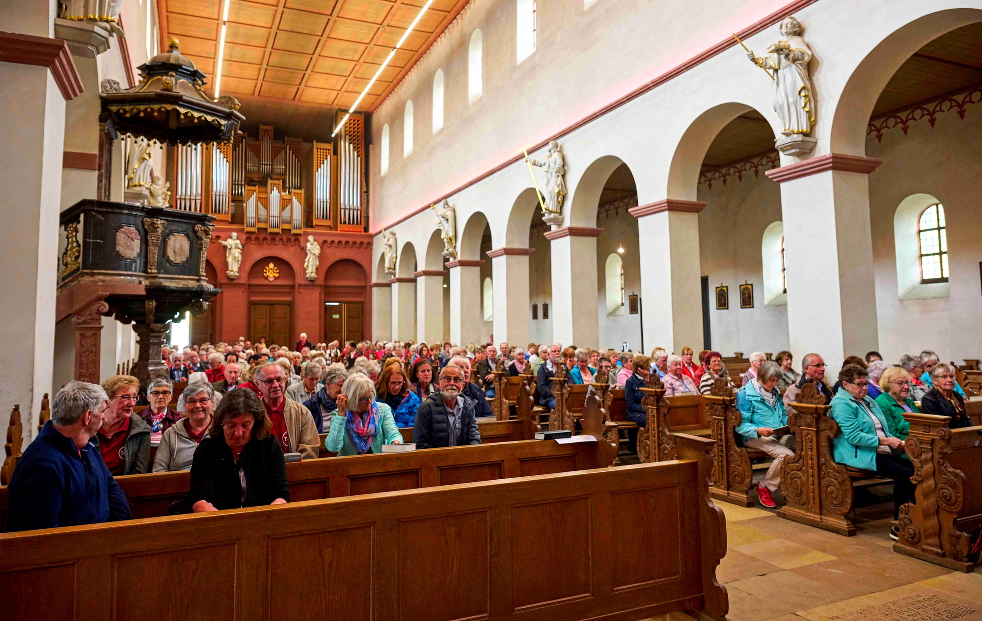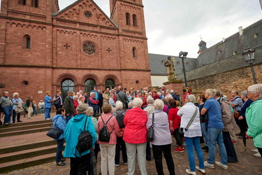 Zunächst erkundeten die Wallfahrer*innen in kleinen Gruppen das große Klosterareal mit dem blühenden Klostergarten, die Altstadt von Seligenstadt, das Mainufer und/oder genossen die Einkehr in einem der vielen Cafés.