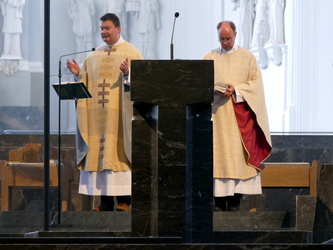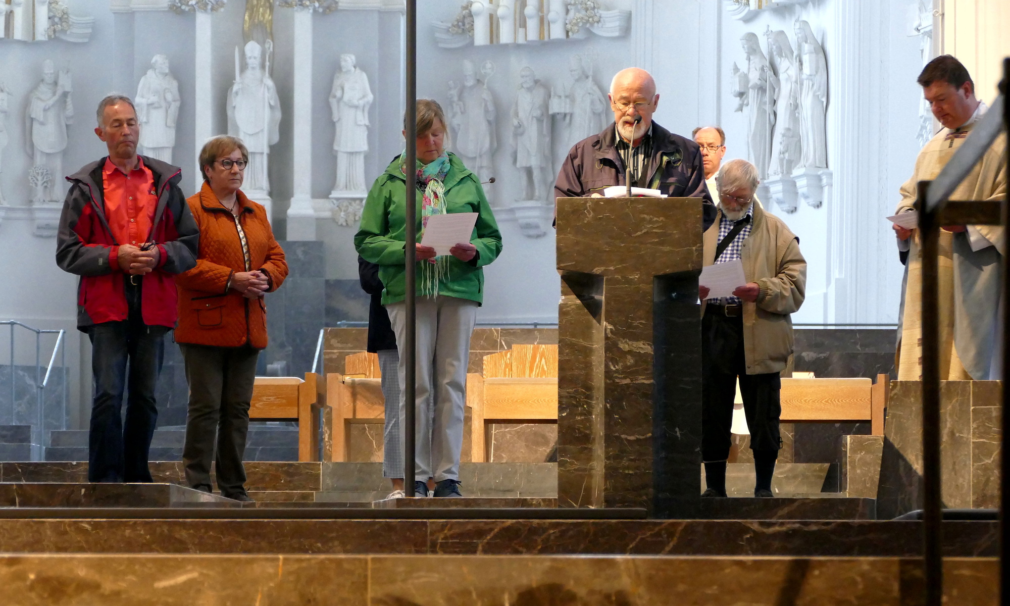 In seiner Predigt ging er auf das Jahresthema des katholischen Seniorenforum ein und ermutigte die älteren Menschen, sich vertrauensvoll in den vielfältigen Fragen und Herausforderungen des Alltages sich an Gott zu wenden. Ihn anzurufen und so auch Unterstützung erfahren. Ähnlich wie es auch die Frankenapostel Kilian, Kolonat und Totnan taten. Die Lesung wie auch die Fürbitten wurden von Senioren aus den verschiedenen Gemeinden vorgebetet.
